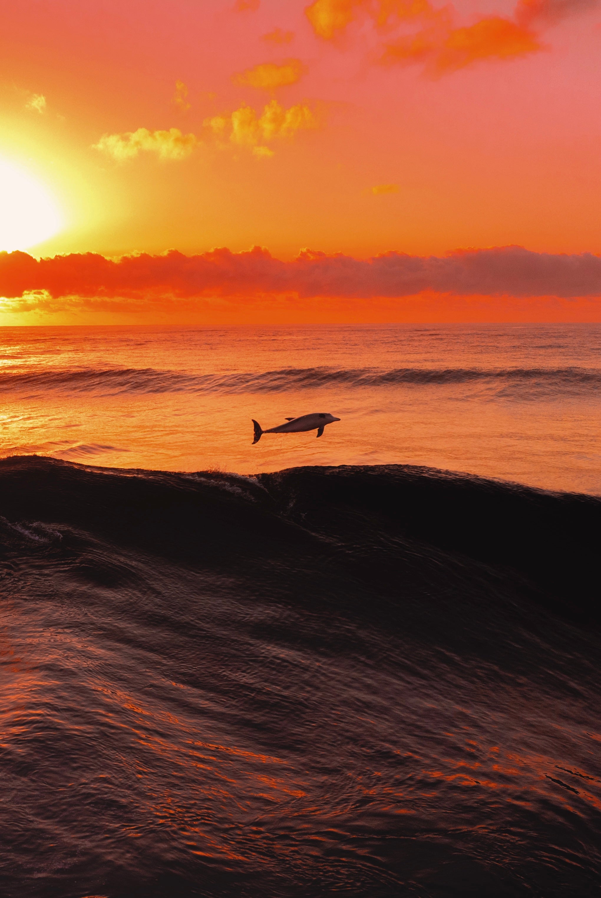A Spectacular jumper caught in mid air, as a bottlenose dolphin celebrates first light. Captured at Tallow Beach, Byron Bay